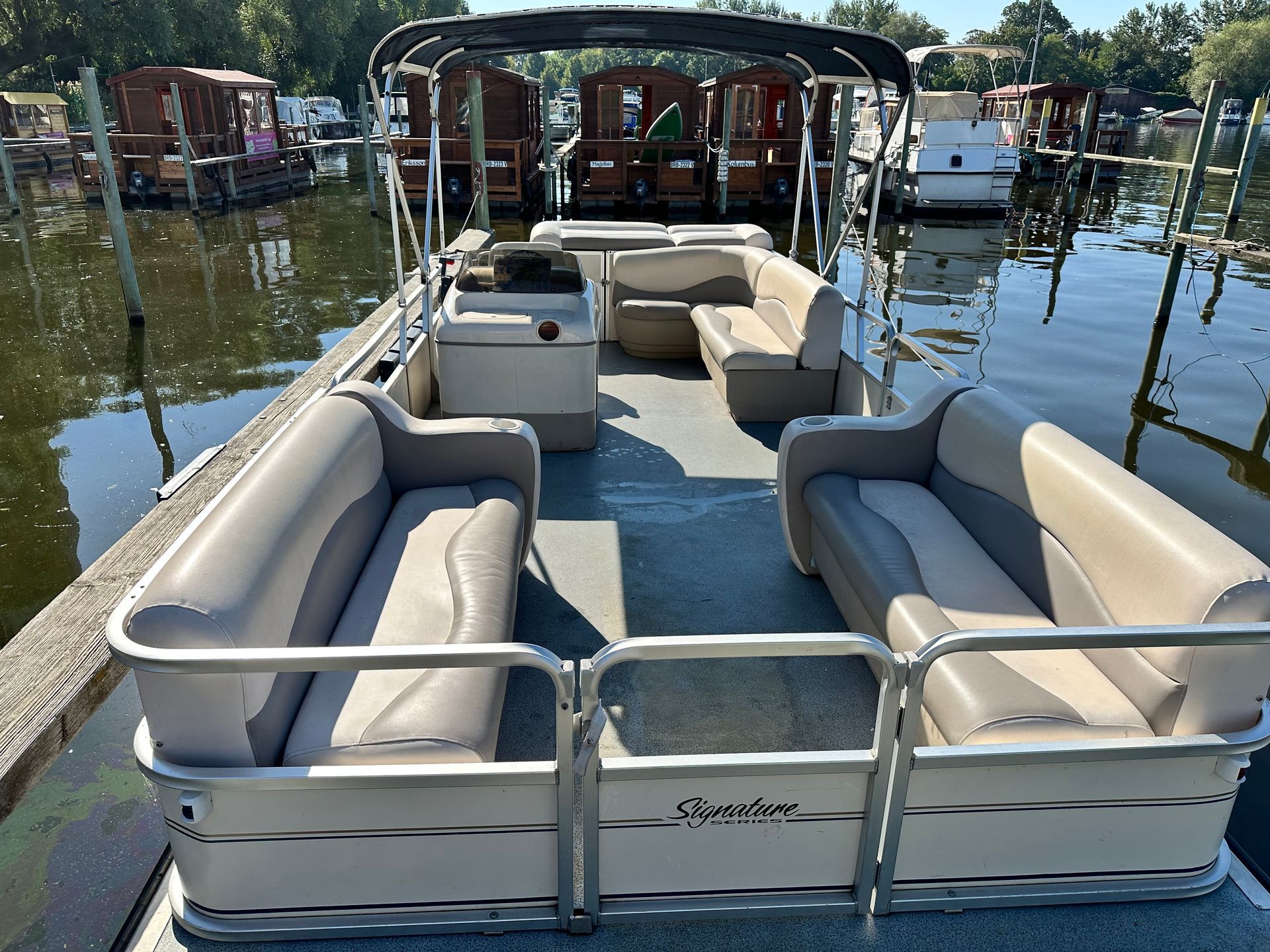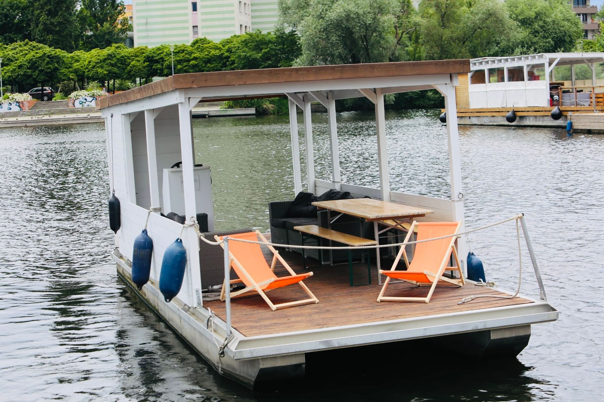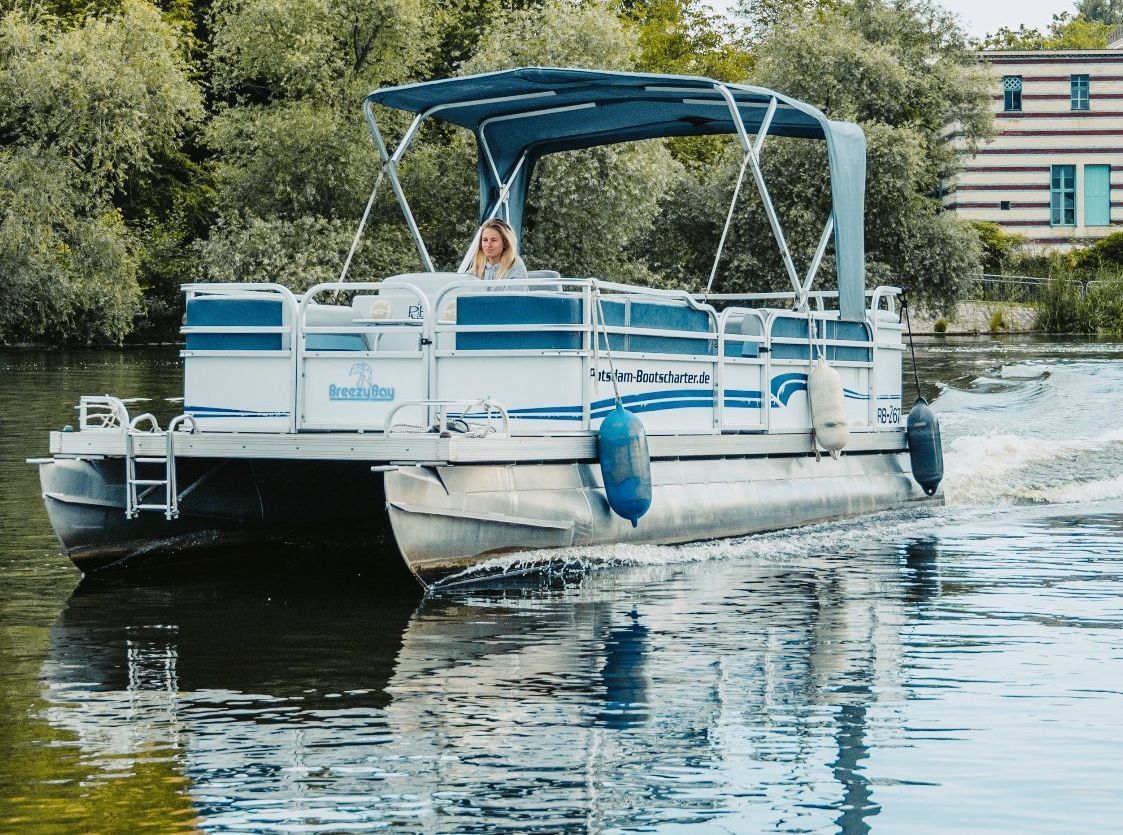 Luxuriöses Pontonboot bis 12 Personen mit Skipper und WC und Rutsche